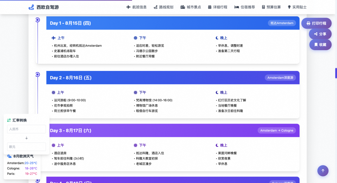 计划9月15到9月24或25去西欧旅游,杭州出发亲子游,共9天。地点选择Amsterdam、Cologne、Paris和Saarbrücken。为这个行程做规划和设计,要求是: 1. 少走回头路,自驾旅游,亲子为主。 2.8月23号要在Saarbrücken参观比赛 3. Cologne预留3天 4.回城的飞机可以在巴黎或者德国,找价格低的航班。