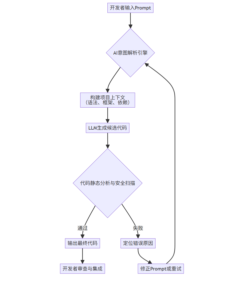 其核心流程可以概括为:意图解析 -> 上下文构建 -> 代码生成 -> 自我审查与迭代。