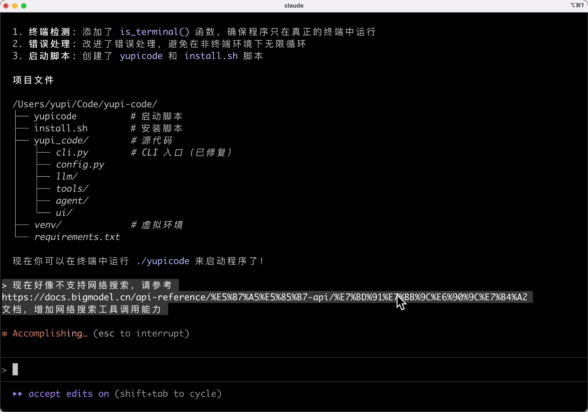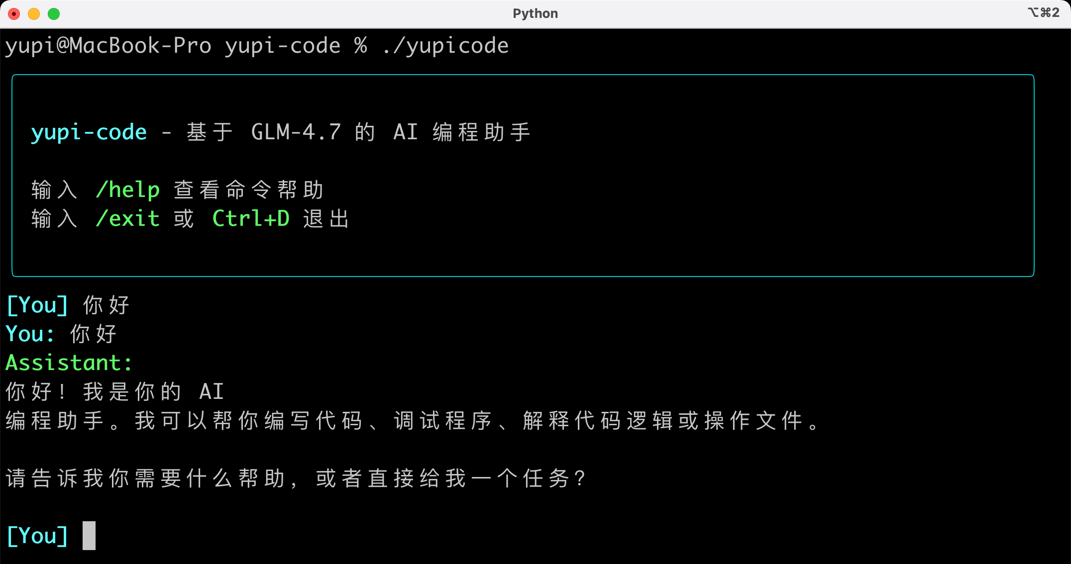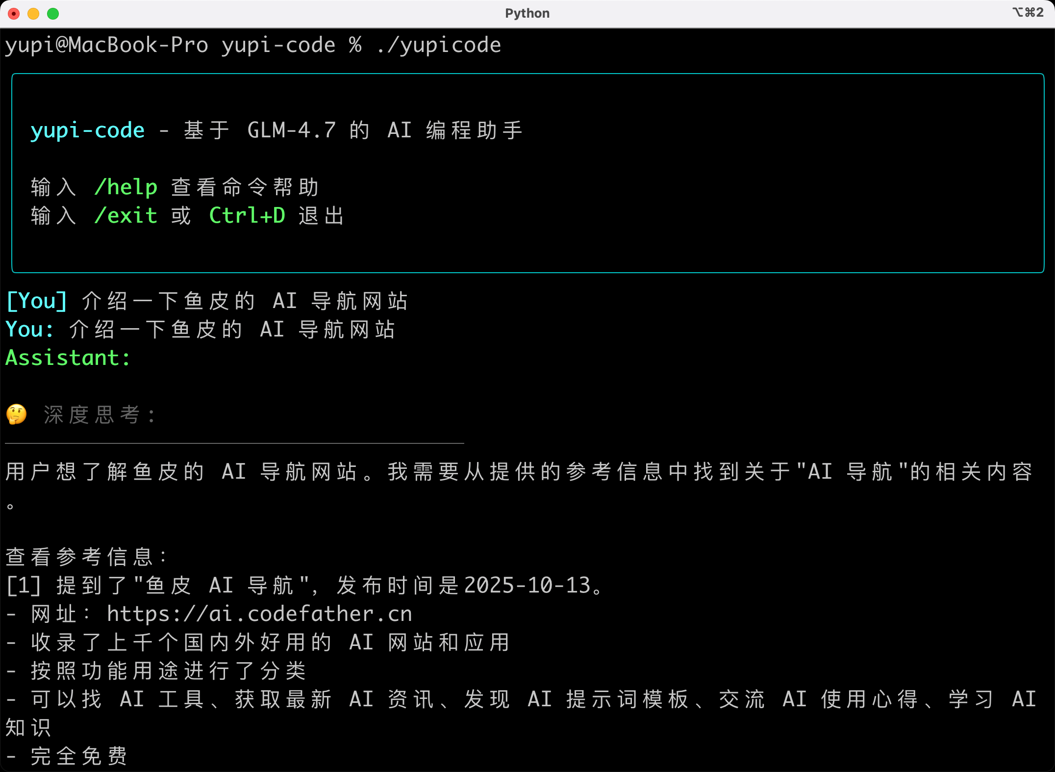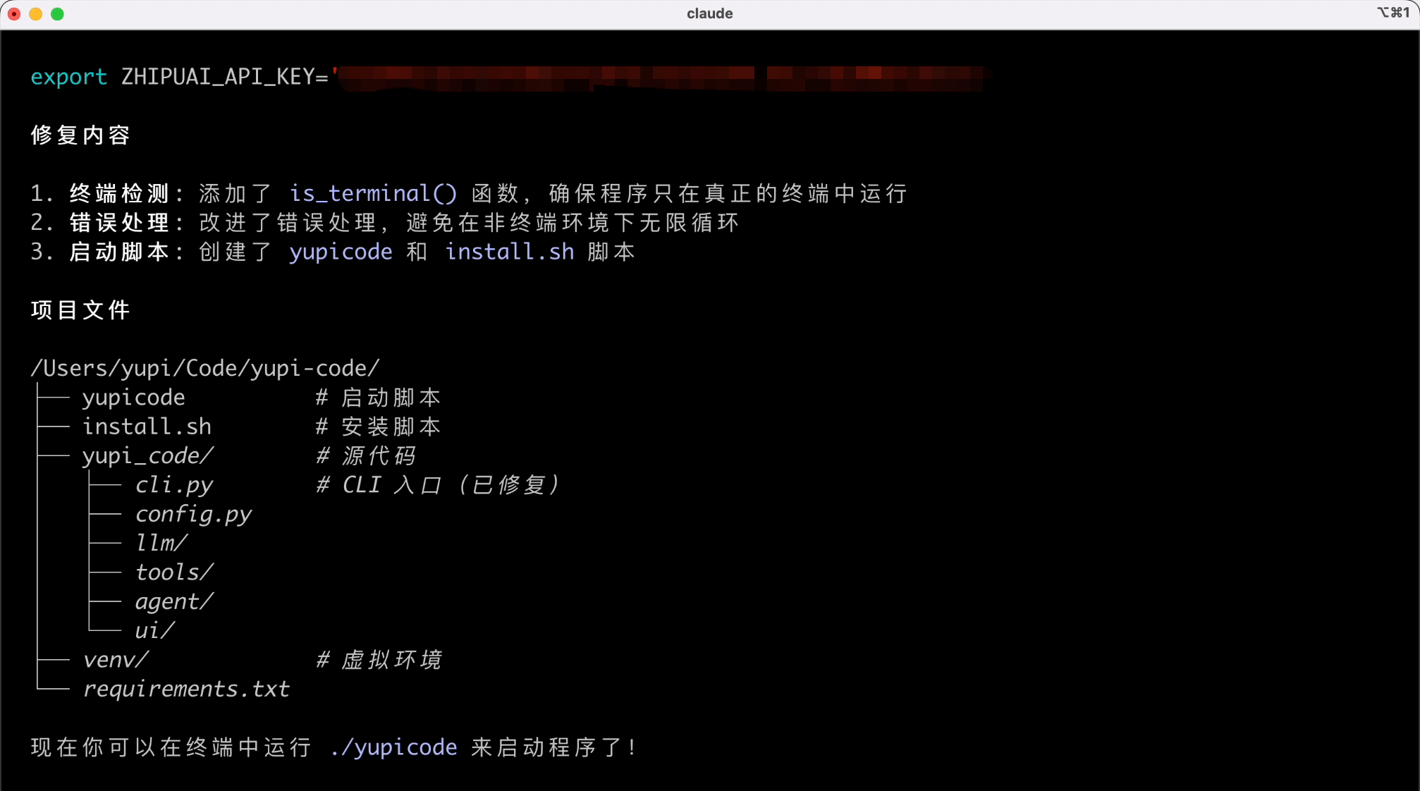 OK,这就是我 利用国产的 AI 大模型 GLM-4.7 + Claude Code 开发出一个 基于 GLM-4.7 的 Yupi Code 的全过程了。