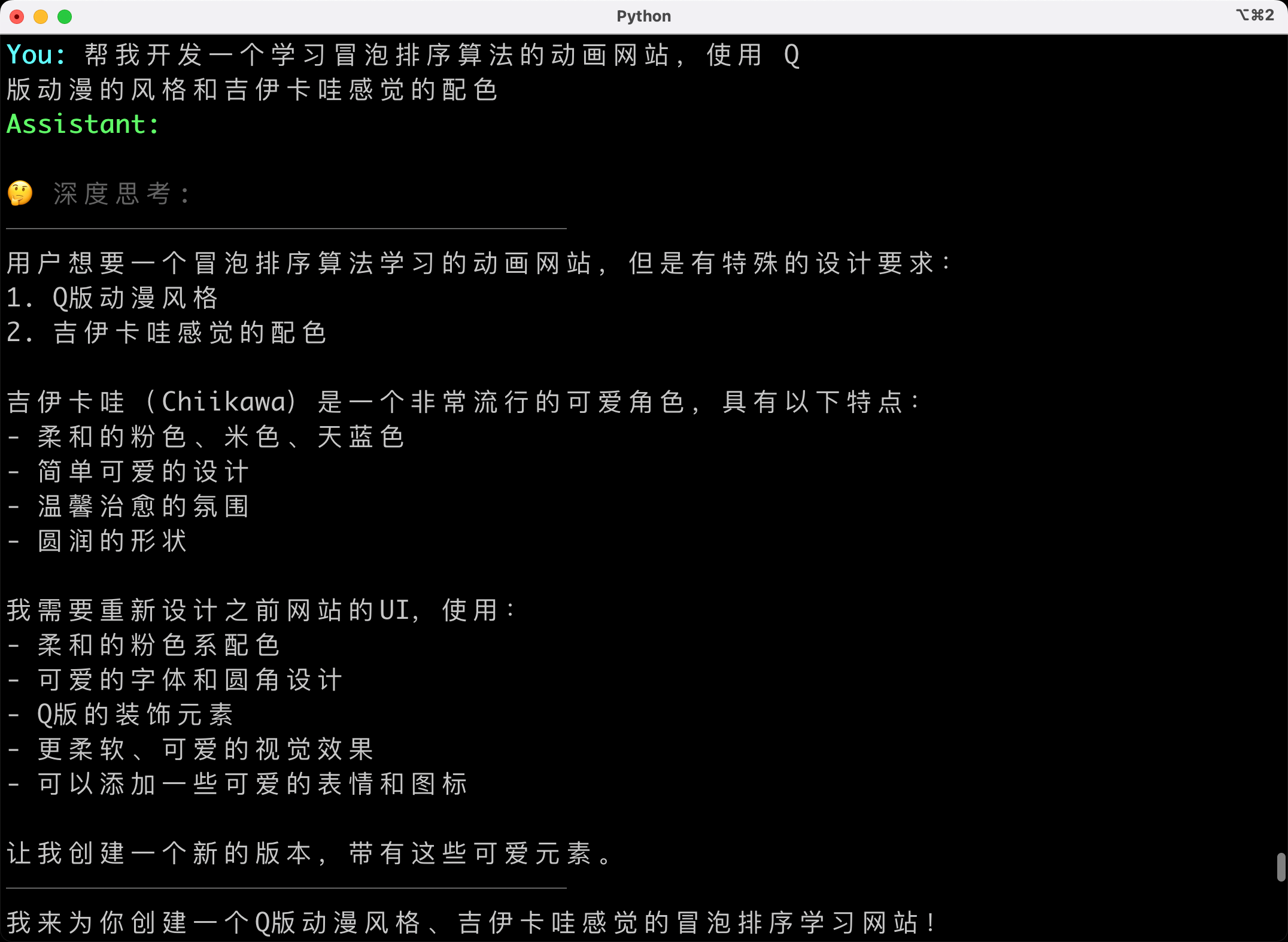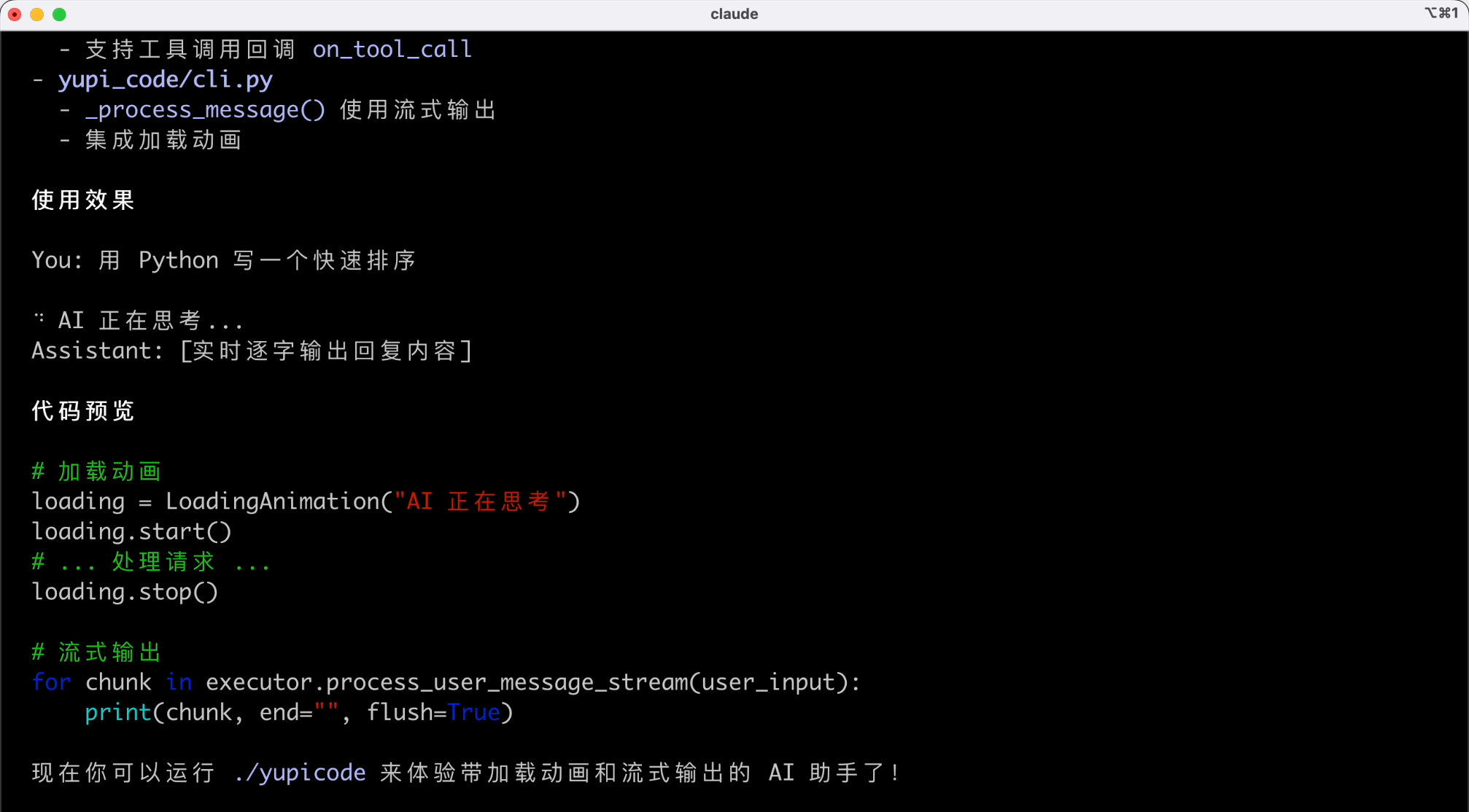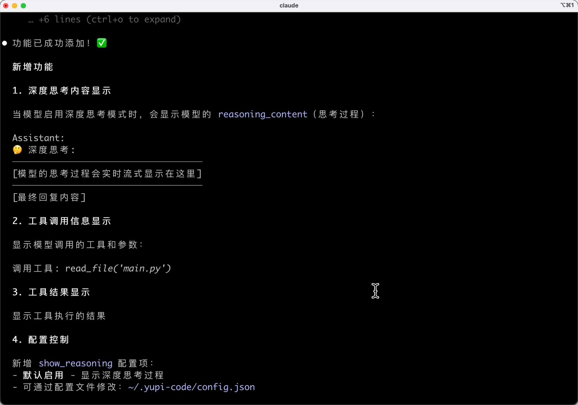 - 优化能力 => 支持更多对标 Claude Code 的功能,比如联网搜索、流式输出、深度思考等