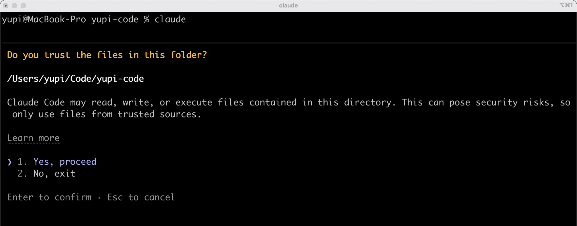 先创建一个干净的项目目录 yupi-code,打开终端并进入该目录: