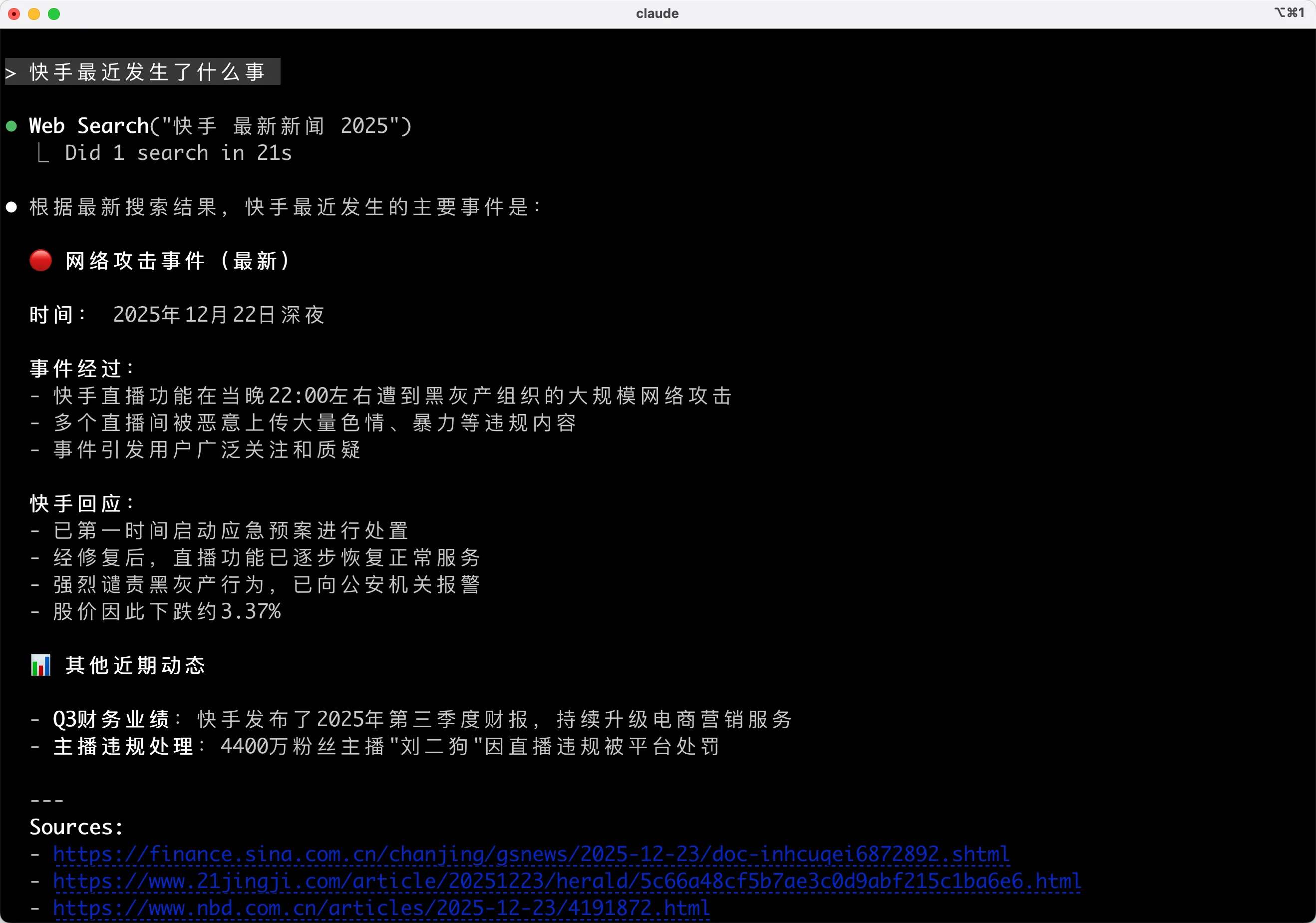让我们依次测试一下,首先是网页搜索能力,紧跟时事: