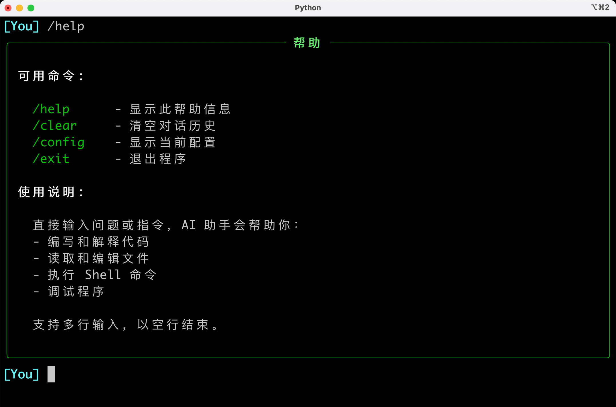 还像 Claude Code 一样提供了一些命令,比如清空对话历史、查看帮助之类的: