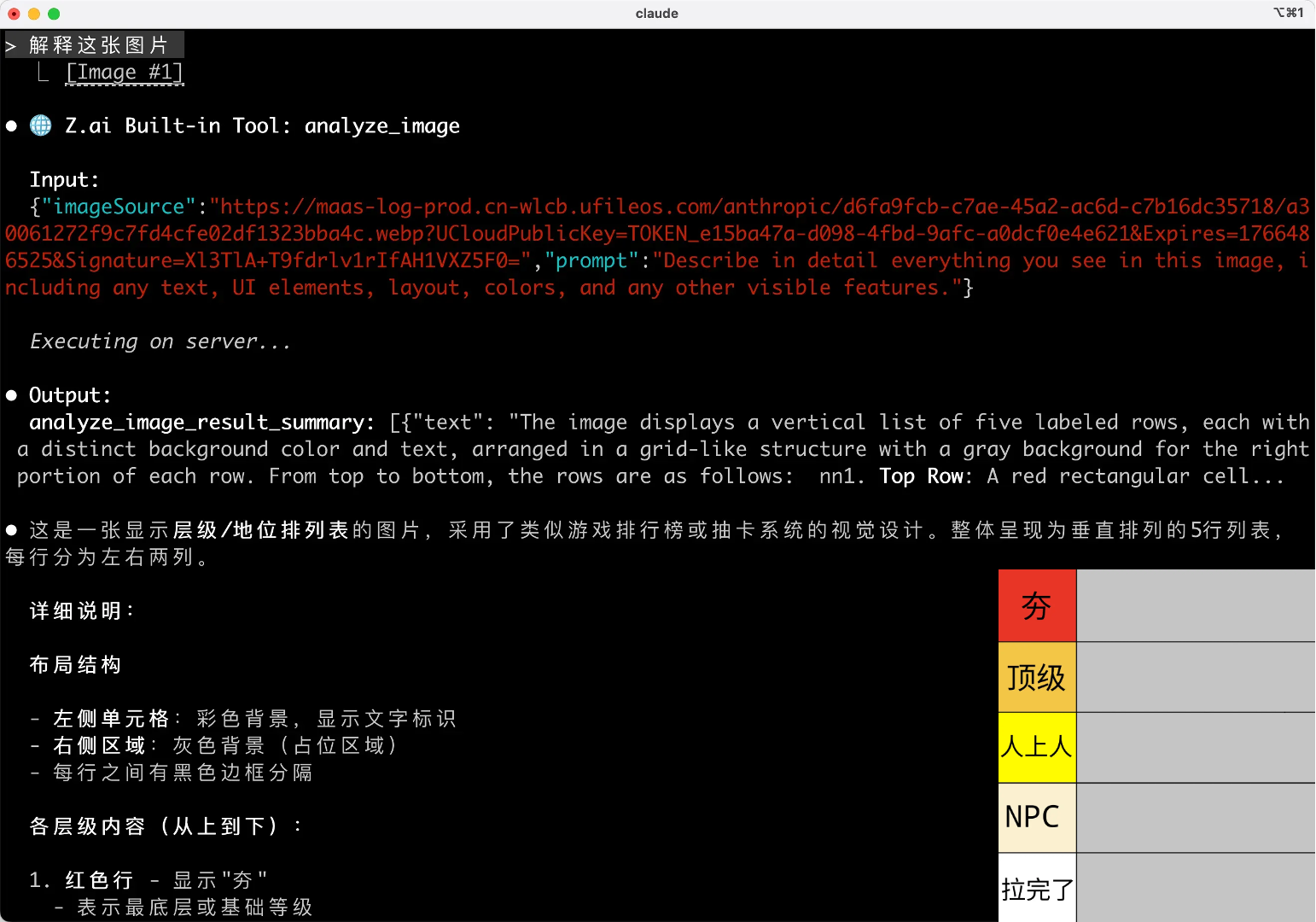 测试图片理解能力,我给 AI 传了一张 “从夯到拉排行榜的背景图”: