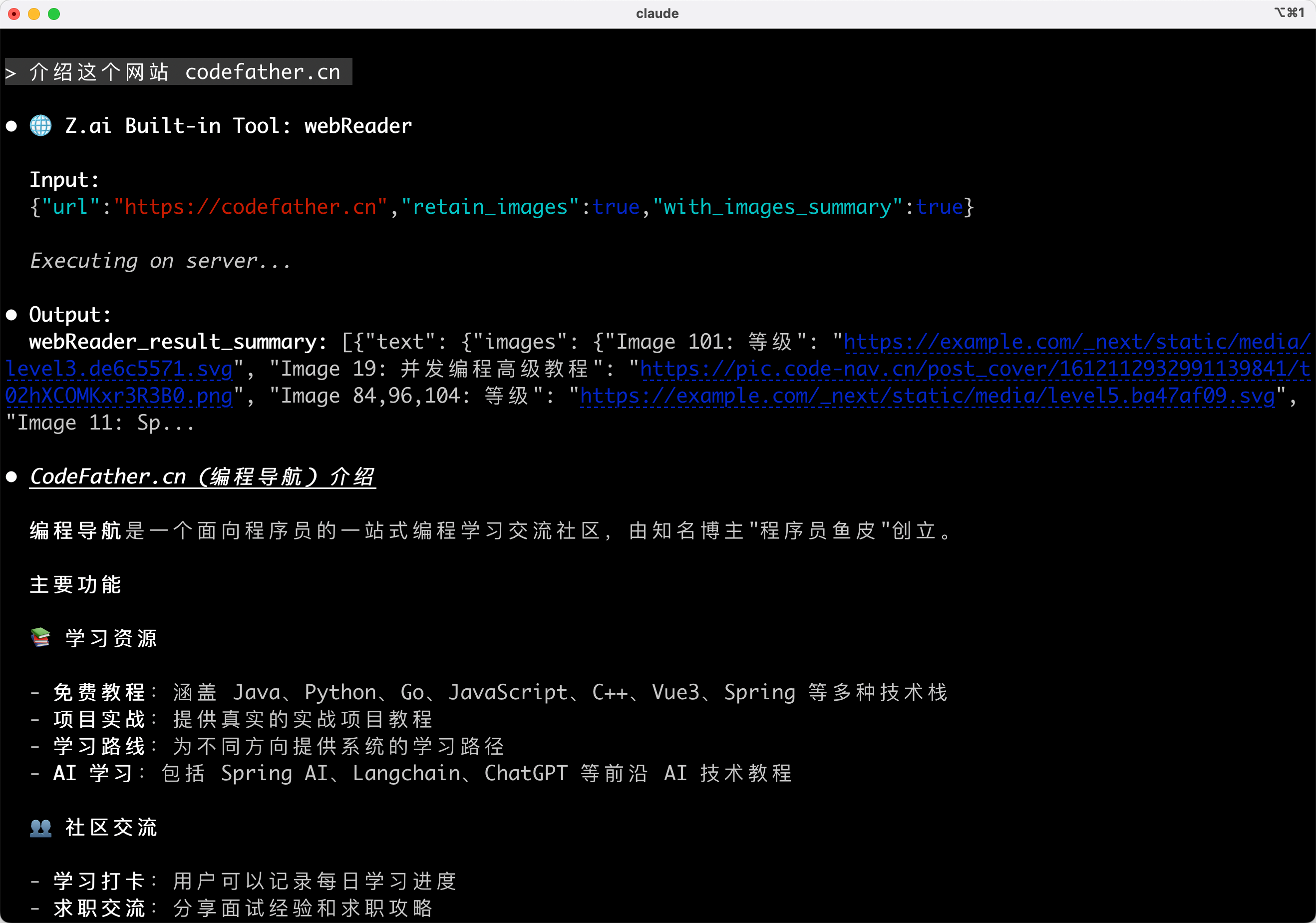 测试网页读取能力,让它来读取我们编程导航网站的信息: