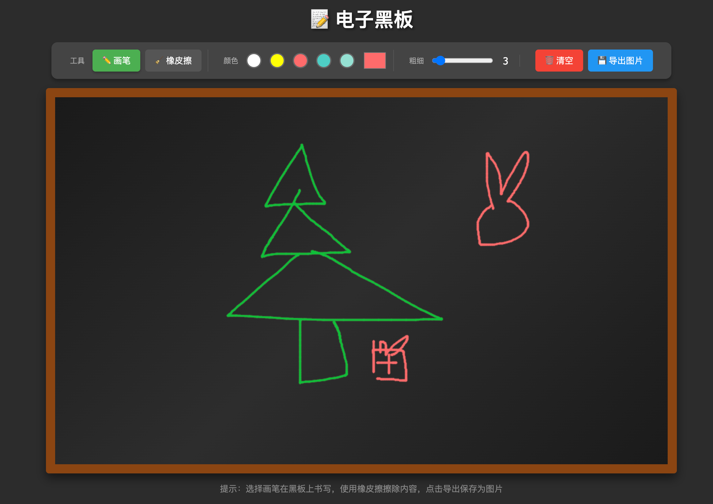 帮我开发一个仿真的电子黑板,用户可以在上面画画并导出为图片