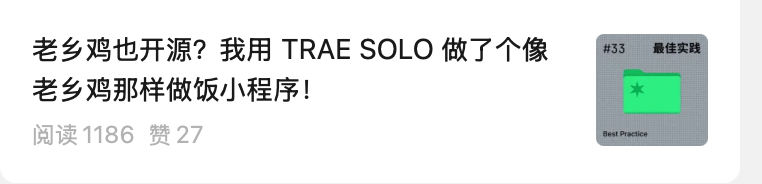 本篇文章同样也被收录到 TRAE 公众号的最佳实践文章。