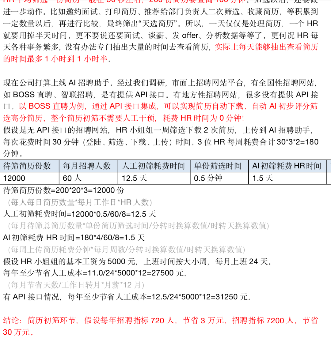 能不能计算 ROI,然后高ROI的先做,先落地,每个表格里面有写清楚,到底节省多少人小时、缩短多少处理时长,比如这里的图示: