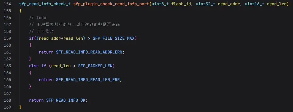 该接口用于检查上位机读取的信息是否合法,如读取地址,读取的长度是否超过范围,同样可不修改,按作者的方式。