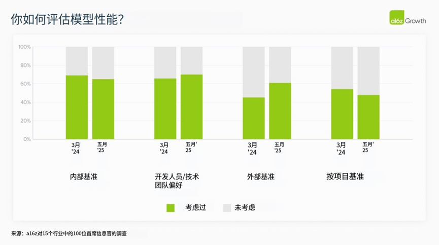 尽管企业仍高度重视内部基准测试、金标数据集和开发者反馈,但外部指标正在成为“第一道门槛”。不过,企业普遍强调:外部 benchmark 只是评估的一部分,真正决定性因素仍然来自实际试用和员工反馈。