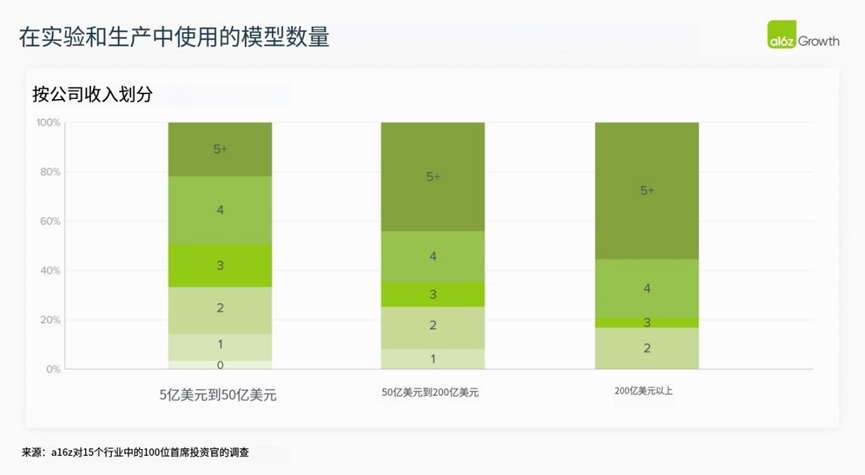 本年度调查中,37% 的企业正在使用五种及以上的模型,较去年的 29% 明显增长。