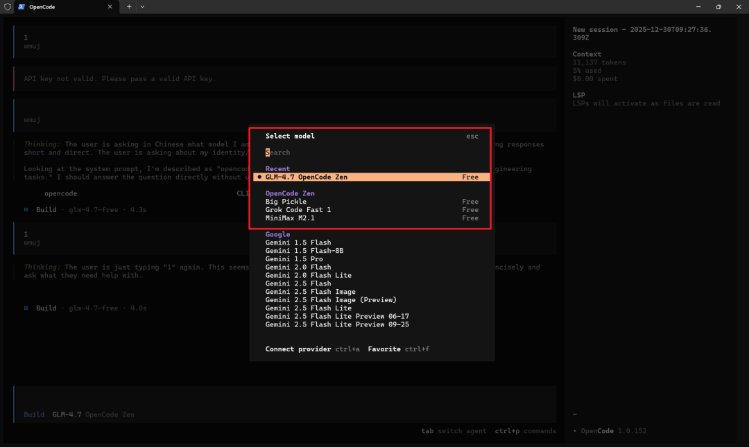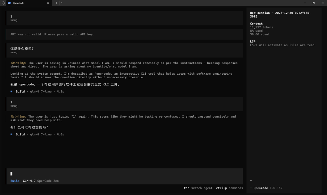 那你很可能会对 OpenCode 产生兴趣。目前已有GLM-4.7、Grok Code Fast 1等模型供大家免费使用!