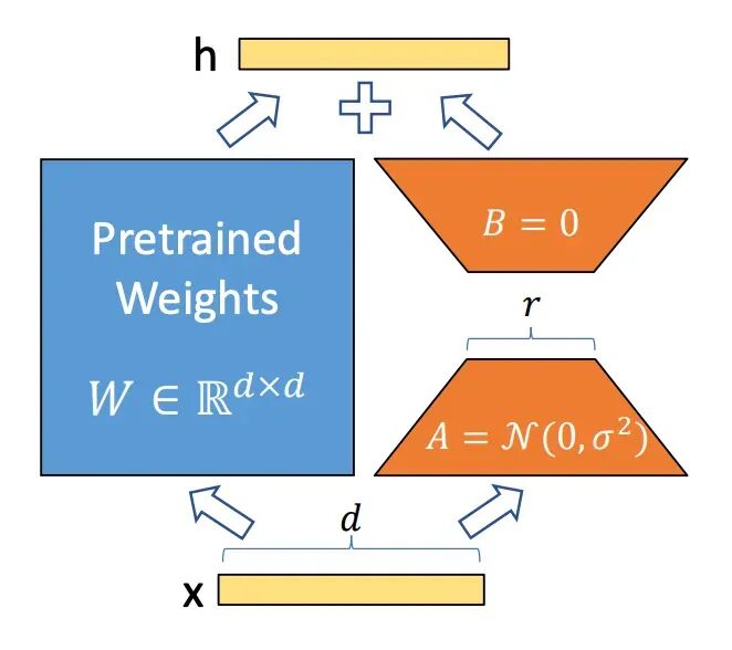 LoRA 原理(来源 LoRA 论文:LORA: LOW-RANK ADAPTATION OF LARGE LANGUAGE MODELS)