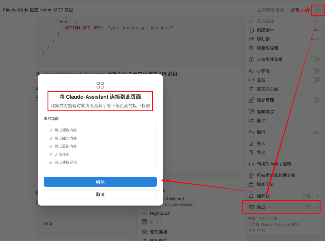 摘要:Notion与Claude Code自动化配置指南 本文介绍了如何配置Notion MCP与Claude Code实现工作区自动化交互。主要内容包括:获取Notion API密钥、本地安装配置notion mcp、验证连接等步骤。作者分享了将工作内容整理到Notion、实验结果归档到多维表格等实用场景,并提供了Claude Code+Notion提升生产力的具体建议(如自动记录技术决策、实验