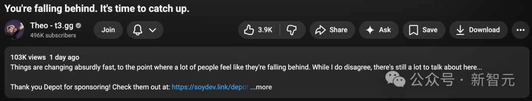 Theo的判断很直接:现在开始适应AI的人,已经是officially late(正式迟到)了。