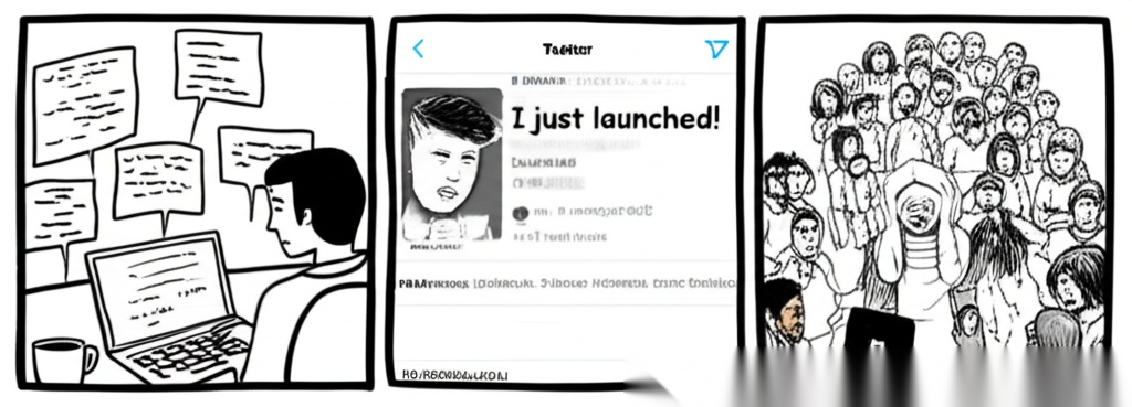 他们花 3 个月写出一个精美的 SaaS,然后在推特发一条「Hey everyone, I just launched xxx」,收获 50 个赞,3 个付费用户。