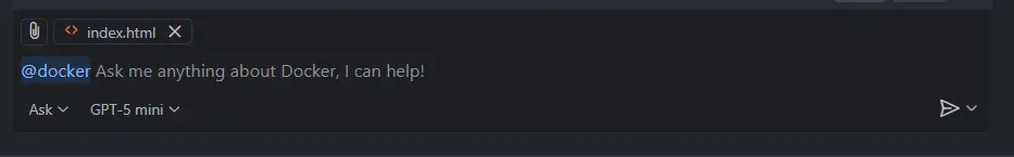 授权通过后,在 VSCode 中使用 Ctrl + Shift + P 输入 Reload Window 重新加载窗口,即可看到 @docker 指令可以使用。
