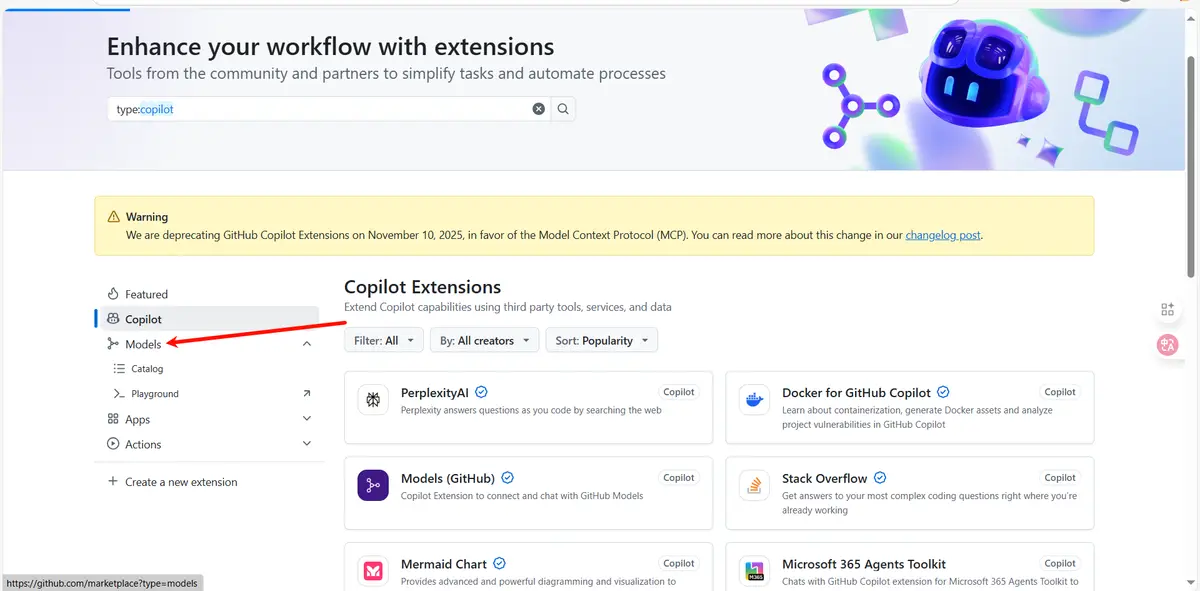 通过 GitHub Marketplace 可以获取对应的插件进行安装,扩展 Agent 功能,这里需要我们在市场里授权用户安装插件(Github 插件是和用户本体绑定的)。