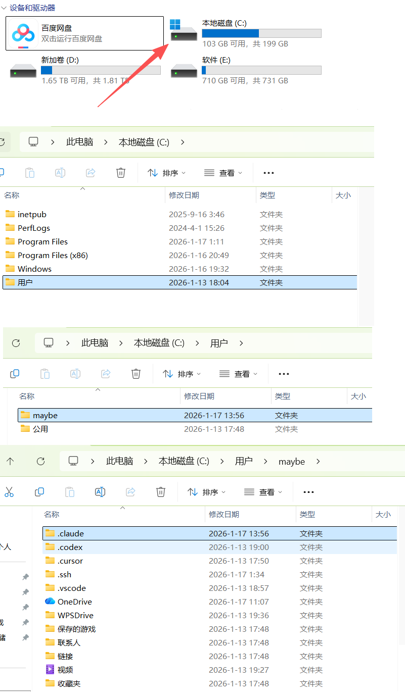 C盘 -> 用户 -> “你的账户名字” -> .claude