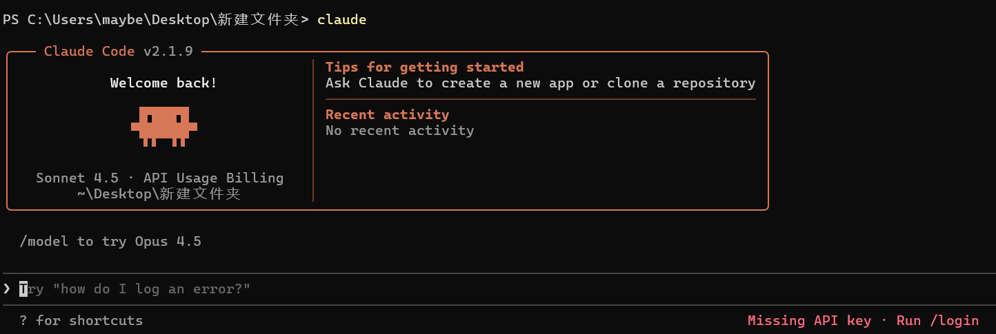 以上步骤完成之后,可以回到你创建的那个新文件夹,然后打开终端,输入claude,然后询问一个很简单的问题:“你好,你现在是什么模型?”