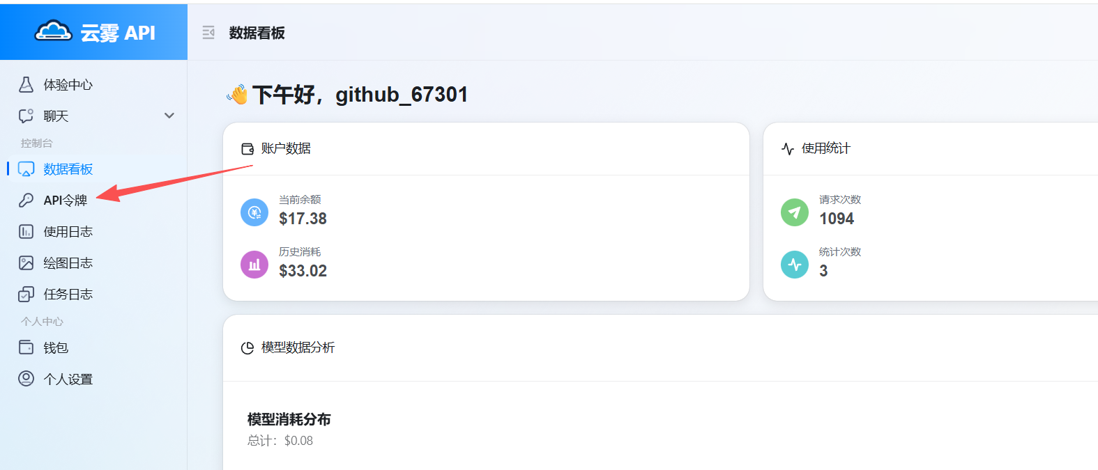 3.2 然后就来了后台,这时候我们要点击“API 令牌”