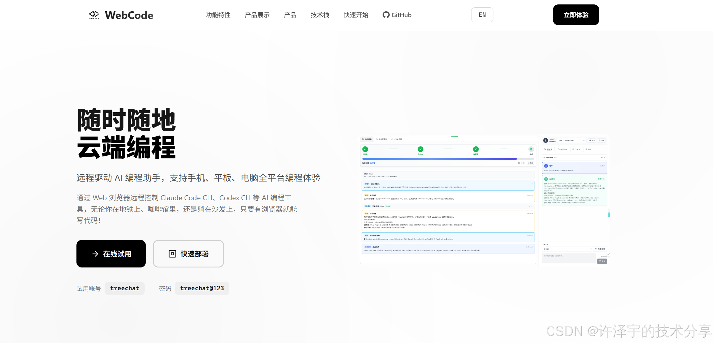 在线体验:https://webcode.tree456.com/(账号:treechat,密码:treechat@123)
