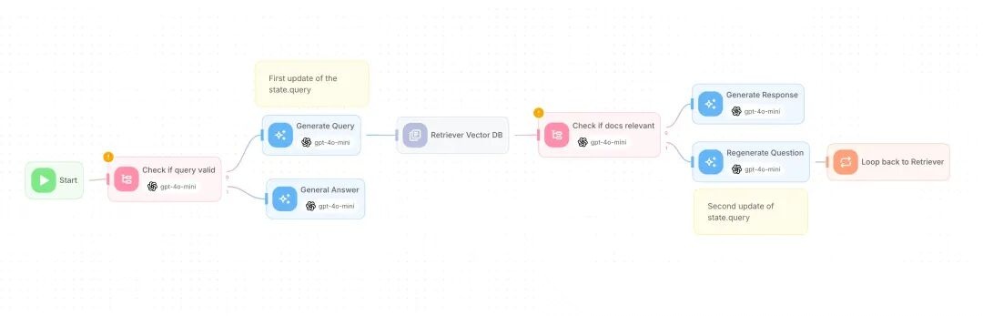 下图是 Flowise (类似于 Dify 和 Coze)给出的一个 RAG Agent 工作流配置的示例。