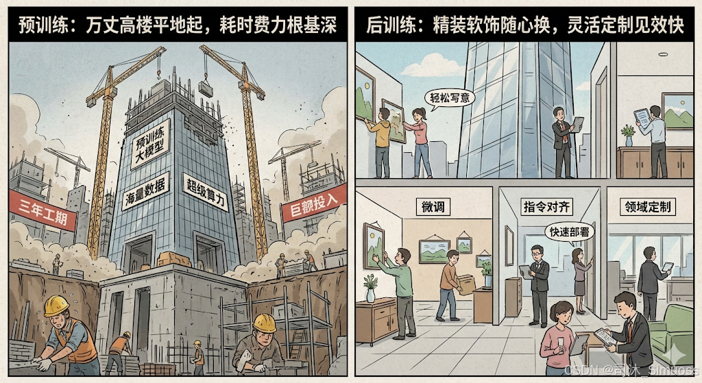 如果说预训练是盖房子,那后训练就是精装修。这才是大多数人和普通开发者能弯道超车的地方: