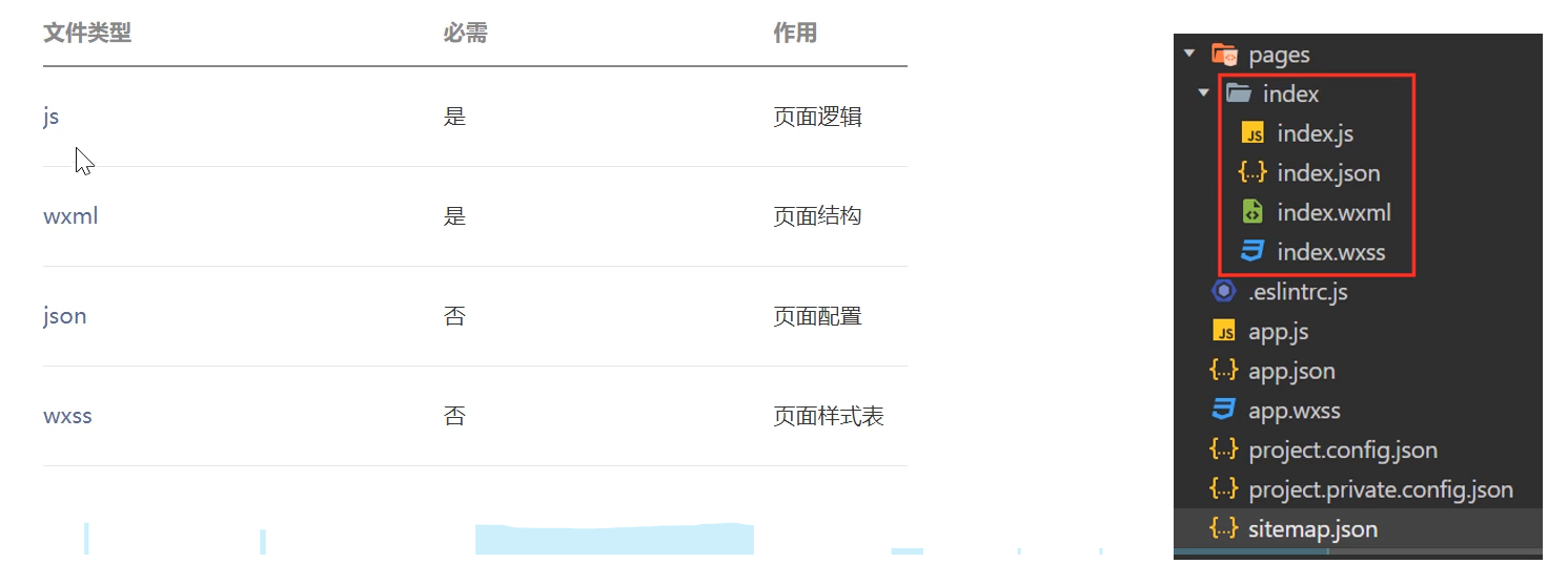 一个小程序页面由四个文件组成: