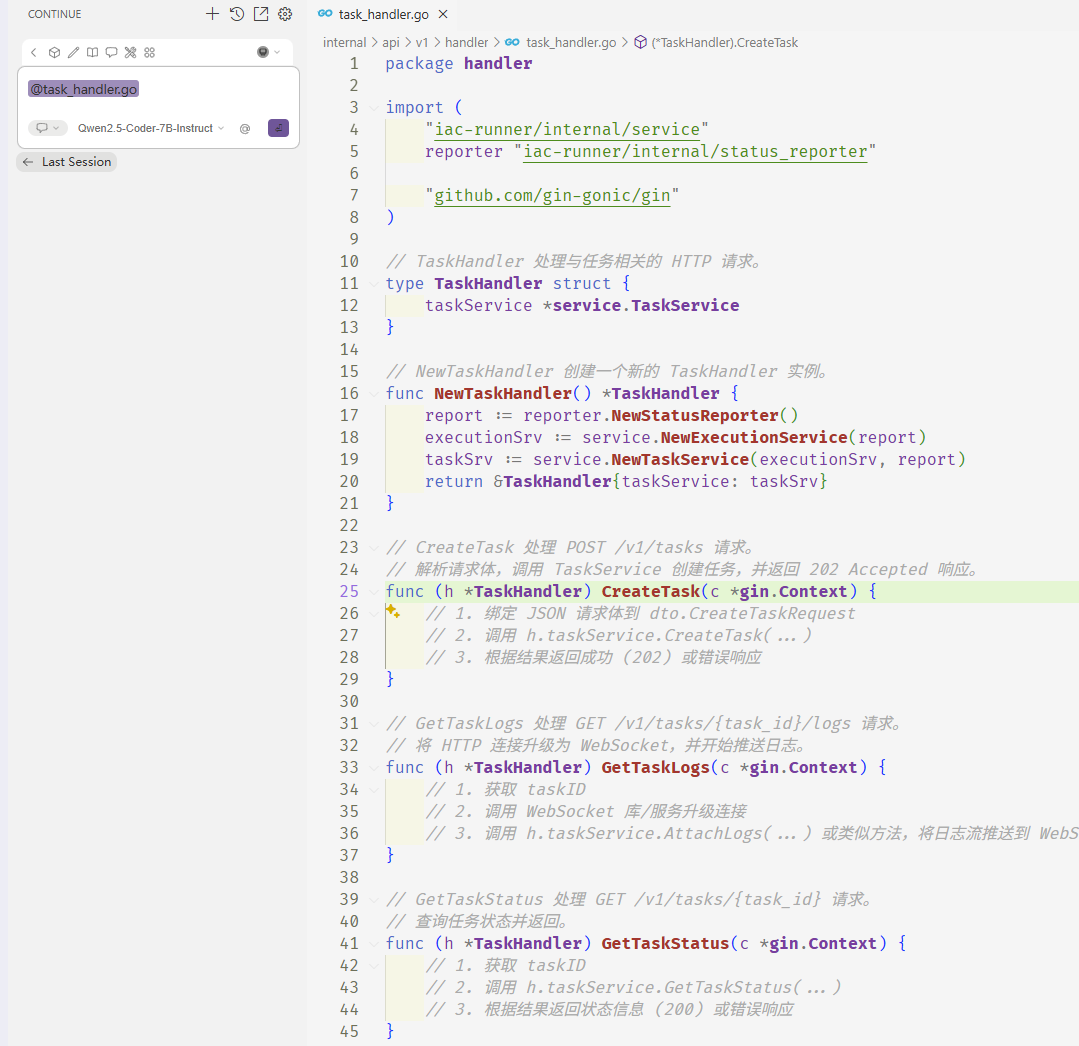 总得来说,此配置文件定义了一个本地代码助手,通过HTTP API连接到一个 Qwen2.5-Coder 模型,支持代码补全、编辑、聊天等功能,并集成了开发环境的多维度上下文(代码、终端、文档等)。