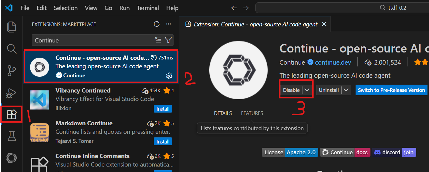在 VS Code 扩展市场搜索“Continue”并安装。