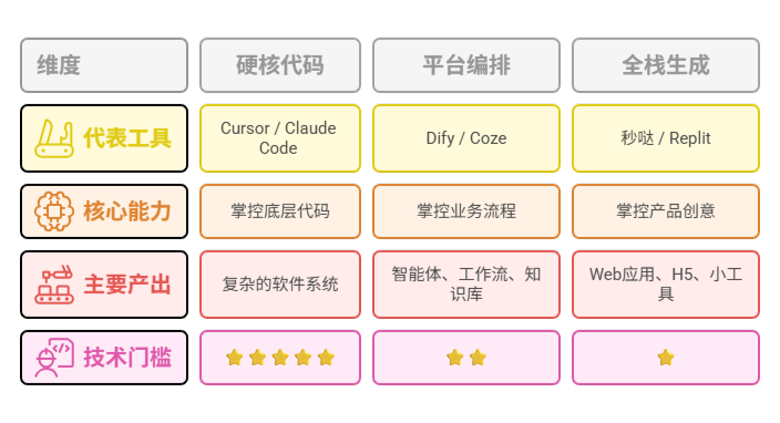 文章解析AI应用开发三种路径:AI编程(掌控代码,难但上限高)、Coze/Dify(掌控流程,易但有局限)、秒哒(掌控创意,最易但最局限)。选择路径取决于你想掌控什么,而非技术难度。没有最好,只有最适合,能偷懒就偷懒,偷不动了再上硬的。