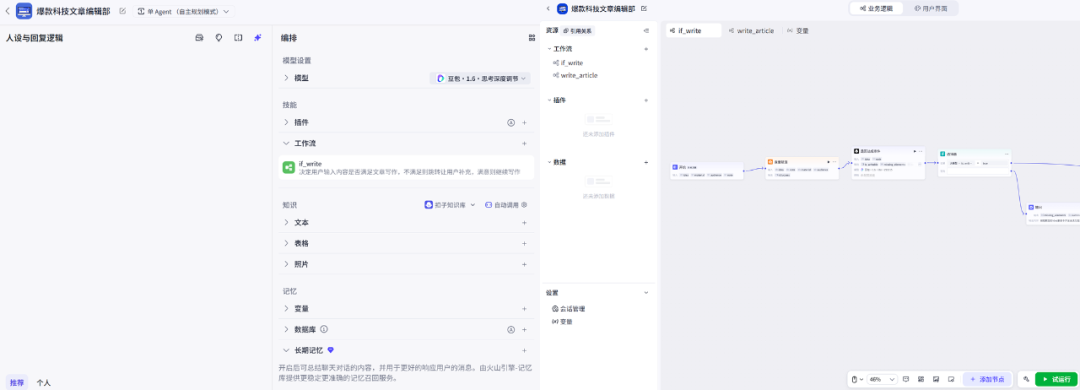 第二层是工作流,进阶玩法。Coze给你一个可视化画布,你拖拽不同的节点连起来,就能按流程执行复杂任务。