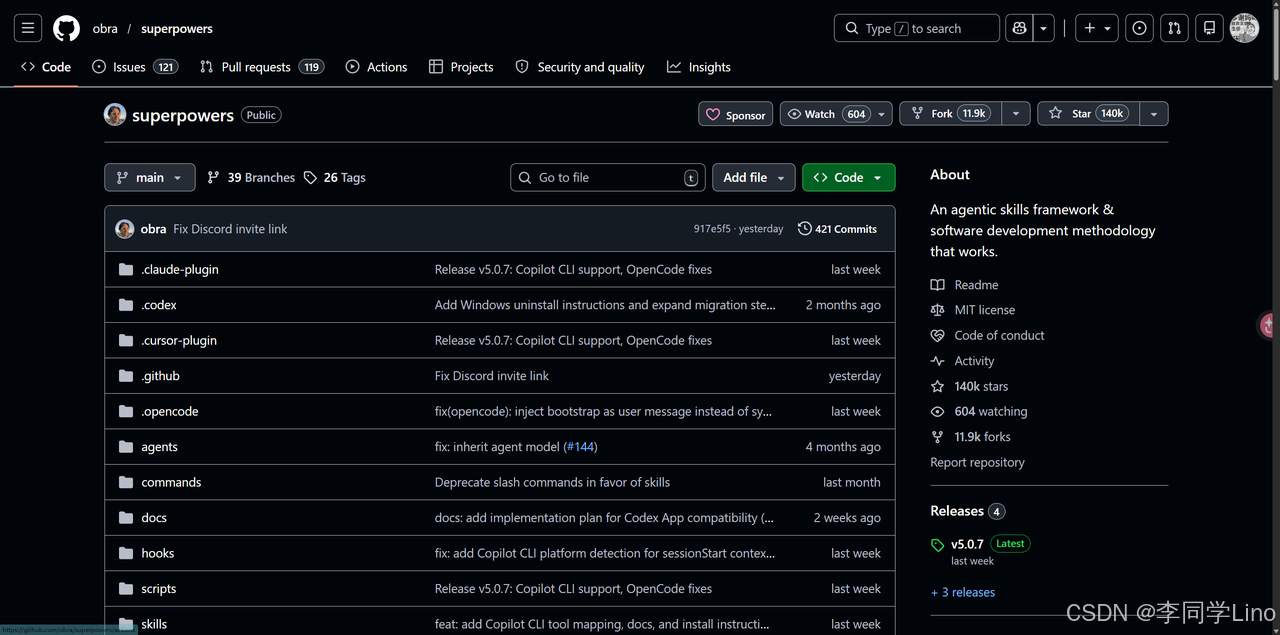 今天,作为日常被AI“毒打”的过来人,我要给你安利一个能让你的Agent体验直接发生质变的插件。 它在GitHub上有着极高的热度,也是我最近日常开发中绝对离不开的神器——Superpowers。